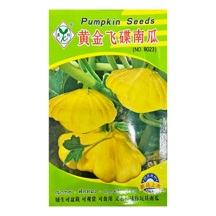 Giống bí ngồi đĩa bay - Pattypan Squash là giống bí thân bụi thấp, không leo. Dễ dàng trồng ở vườn hoặc trồng chậu/thùng xốp. Trọng lượng quả đạt 0,5-1,5kg. Bí thơm ngon rất giàu dinh dưỡng. Có thể dùng decor trang trí vì bí bảo quản được rất lâu.